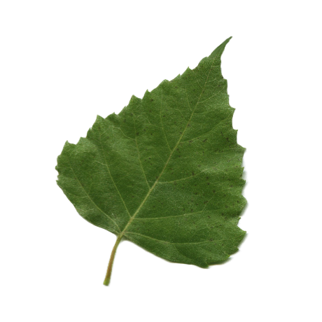 Trójkątne, jajowatotrójkątne lub rombowate, z podwójnie piłkowanym brzegiem, długości ok. 7 cm, na 1,5-3-centymetrowym ogonku liściowym. Wierzch intensywnie zielony, spód jaśniejszy; obustronnie nagie.
