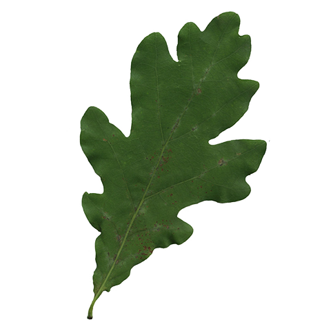 Klapowane, osadzone na ogonku liściowym dłuższym niż u dębu szypułkowego. Nie posiadają „uszek” u nasady blaszki liściowej, która zbiega klinowato po ogonku. Nerwy boczne dochodzą tylko do klap.