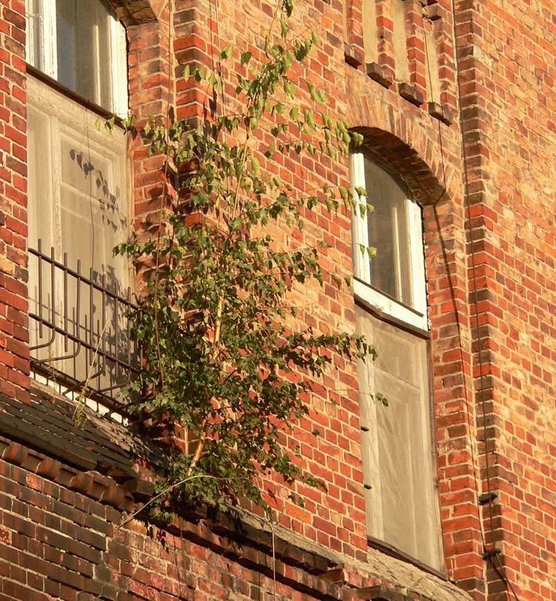 - Brzoza nierzadko obsiewa się na ruinach i nieużytkach poprzemysłowych. Jest odporna na zanieczyszczenia powietrza, niskie temperatury, rośnie szybko i radzi sobie dobrze w warunkach nieodpowiednich dla innych drzew liściastych. Jest jednak krótkowieczna i rzadko przekracza wiek 100 lat.